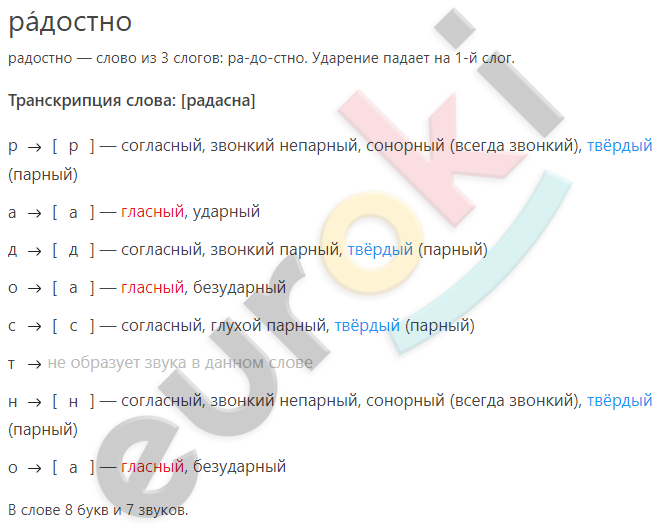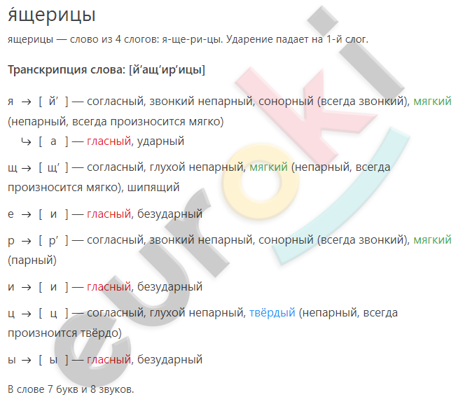 2. Сделайте фонетический разбор слов «ящерицы», «радостно», «солнце».