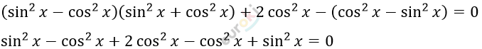 \[2\sin^{2}x - 1 - \left( \cos^{4}x - \sin^{4}x \right) = 0\]