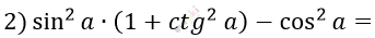 \[1)\ \left( 1 - \sin^{2}a \right)\left( 1 + tg^{2}\text{\ a} \right) = 1\]