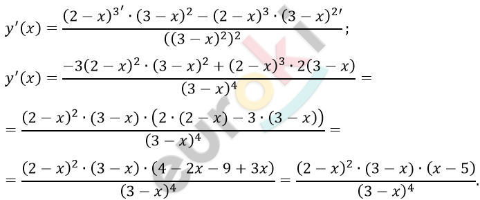 \[1)\ y = \frac{(2 - x)^{3}}{(3 - x)^{2}}\]