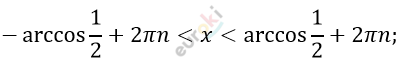 \[2)\ \cos x > \frac{1}{2}\]
