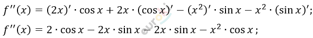 \[= \left( x^{2} \right)^{'} \bullet \cos x + x^{2} \bullet \left( \cos x \right)^{'};\]