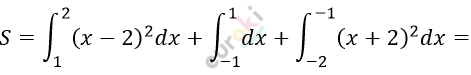 \[= \left. \ \frac{(x - 2)^{3}}{3} \right|_{1}^{2} + \left. \ x \right|_{- 1}^{1} + \left. \ \frac{(x + 2)^{3}}{3} \right|_{- 2}^{- 1} =\]