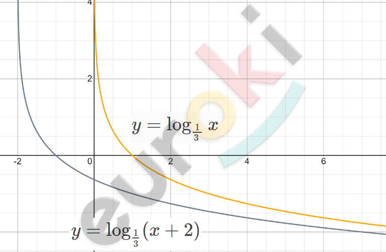 \[\textbf{г)}\ y = \log_{\frac{1}{3}}x;\ \ \ y = \log_{\frac{1}{3}}{(x + 2)}\]