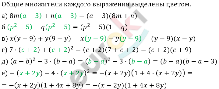 \[\textbf{г)} - 9m - 27n = - 9 \cdot (m + 3n)\]
