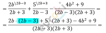 \[= \frac{4b^{2} - 6b + 10b + 15 - 4b^{2} - 9}{(2b - 3)(2b + 3)} =\]