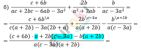 \[= \frac{ca + 6ba + 2bc - 6ba - ba - 2b^{2}}{a(c - 3a)(a + 2b)} =\]