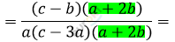 \[= \frac{ca + 2bc - ba - 2b^{2}}{a(c - 3a)(a + 2b)} =\]