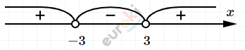 \[x \in ( - \infty;\ - 3) \cup (3;\ + \infty).\]