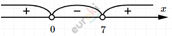 \[x \in ( - \infty;0) \cup (7; + \infty).\]