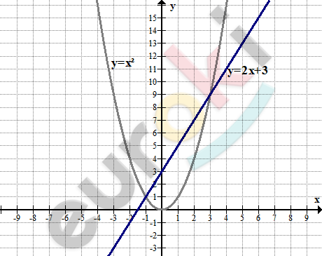 \[\left\{ \begin{matrix} y = x^{2}\text{\ \ \ \ \ \ \ } \\ y = 2x + 3 \\ \end{matrix} \right.\ \]