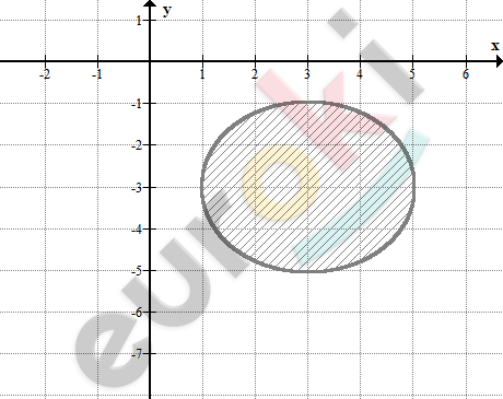 \[\textbf{а)}\ (x - 3)^{2} + (y + 3)^{2} \leq 4\]