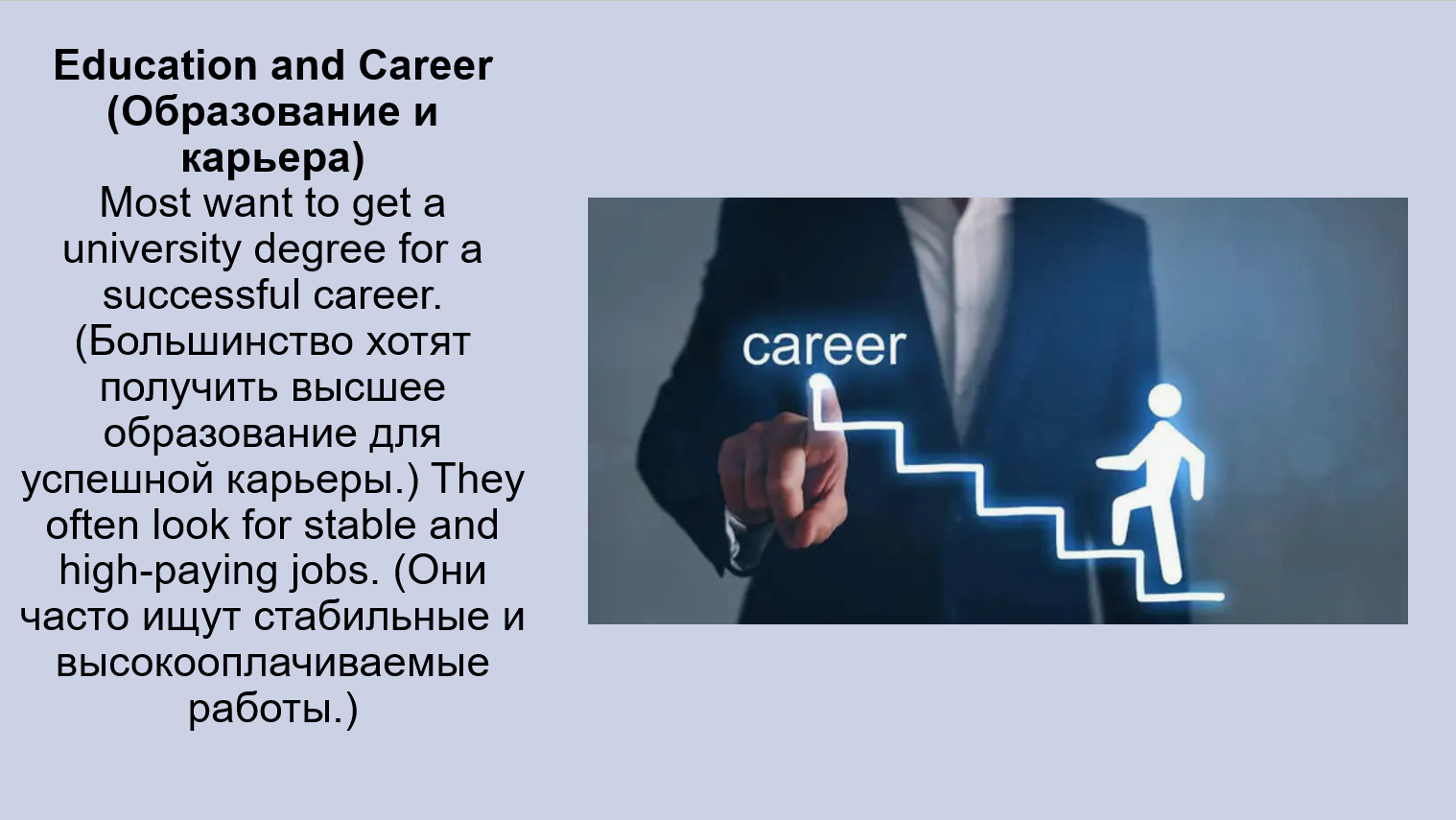 Добавить текст Вернуть оригиналThe opportunity to choose a career. (Возможность выбрать карьеру.) ✓