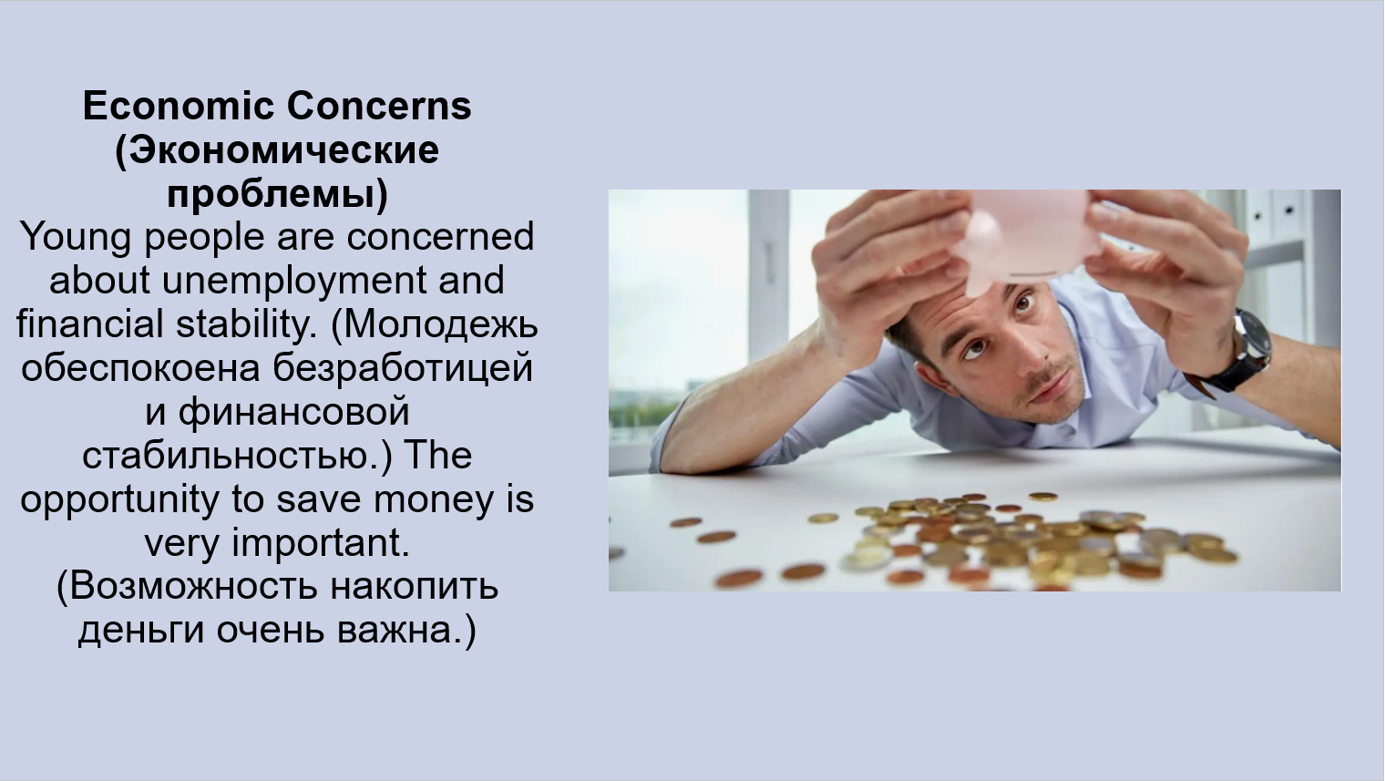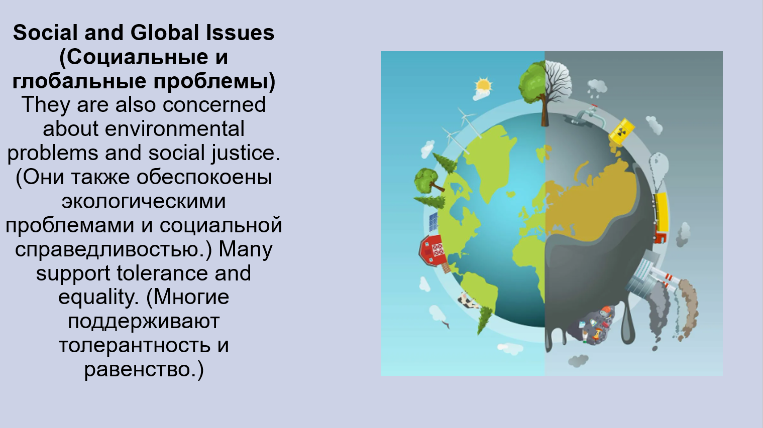 Добавить текст Вернуть оригиналIssues they are concerned about: They are concerned about future job stability (стабильность будущей работы), corruption (коррупция), and environmental problems (экологические проблемы).