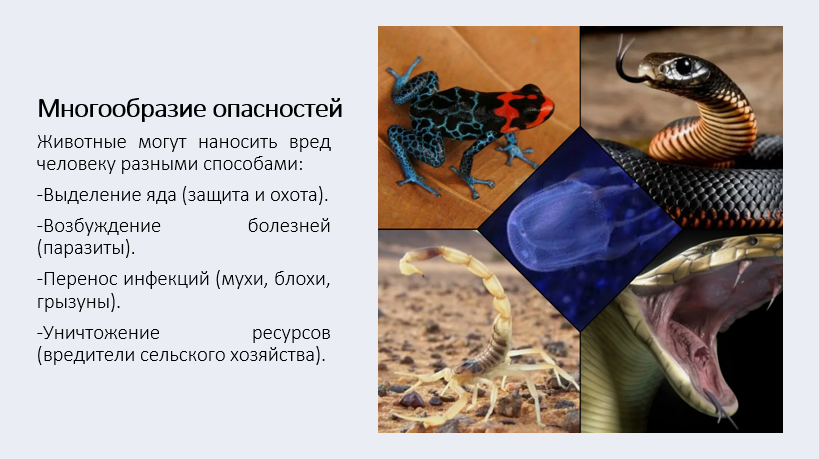 Добавить текст Озвучить Вернуть оригинал1. Введение. Роль животных в жизни человека и причины их опасности.