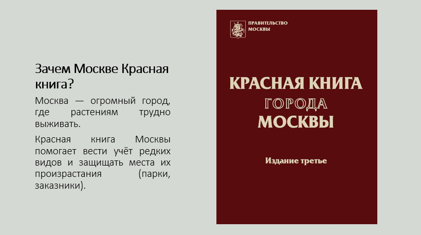 Добавить текст Озвучить Вернуть оригинал1. Введение. Особенности Красной книги города Москвы и её значение для мегаполиса.