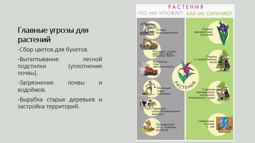Добавить текст Озвучить Вернуть оригинал2. Причины сокращения численности растений. Влияние городской среды и деятельности человека.