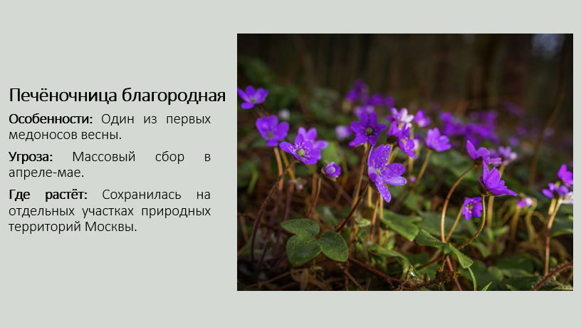 Добавить текст Озвучить Вернуть оригинал4. Печёночница благородная. Раннецветущее растение под защитой.