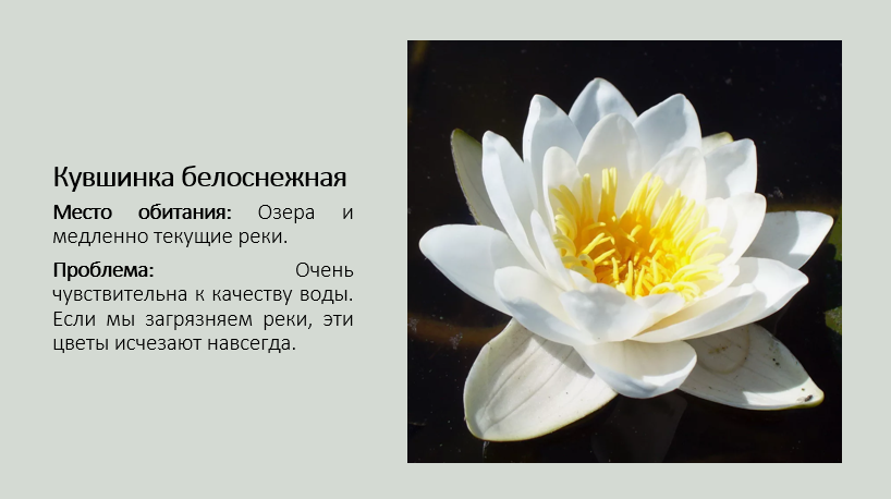 Добавить текст Озвучить Вернуть оригинал5. Кувшинка белоснежная. Обитатель московских водоёмов.
