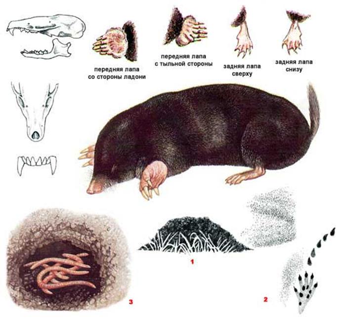 При изучении крота я заметил, что его передние конечности превращены в мощные «лопаты», приспособленные для рытья, а тело покрыто короткой шерстью, которая может заглаживаться в разные стороны.