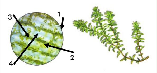 1. Поместите веточку элодеи на несколько минут в тёплую воду. Приготовьте микропрепарат листа элодеи. Для этого отделите лист от стебля, положите его в каплю воды на предметное стекло и накройте покровным стеклом.