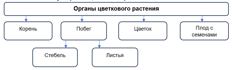 3. Заполните схему «Органы цветкового растения».