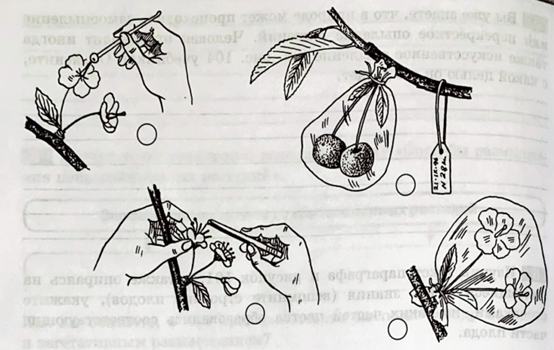 Добавить текст Озвучить Вернуть оригиналРассмотрите рисунок. Художник перепутал последовательность действий селекционера при искусственном опылении. Обозначьте цифрами правильную последовательность действий и объясните (устно), с какой целью выполняется действие на каждом этапе искусственного опыления.