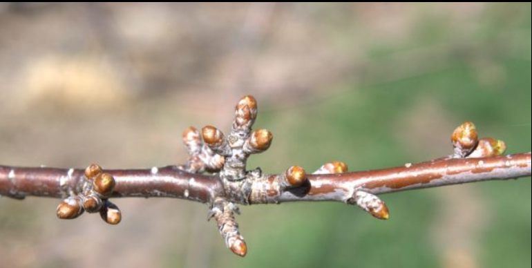 1. Рассмотрите расположение почек на побеге вишни. Сделайте рисунок.