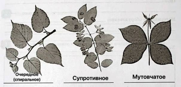 5. Определите и подпишите типы листорасположения, изображённые на рисунках.