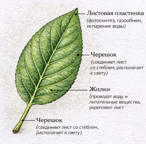 План статьи «Внутреннее строение листа»
