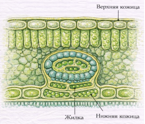 Больше всего хлоропластов находится в клетках мякоти листа.