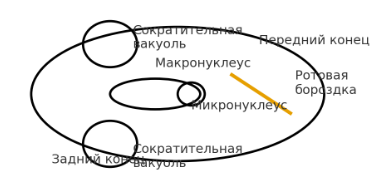 2. Клетка имеет специализированные органеллы: два ядра, клеточный рот, глотку и две сократительные вакуоли.