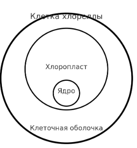 3. Рассмотрите при малом увеличении микропрепарат хлореллы. Зарисуйте клетку хлореллы.