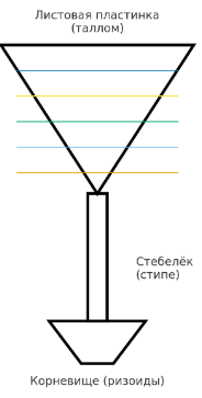 Таллом ламинарии имеет форму длинной ленты, растущей на коротком стволике.