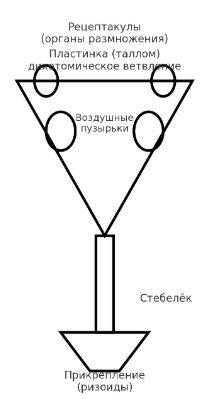 Добавить текст Озвучить Вернуть оригиналТаллом фукуса имеет плоский, ремневидный, сильно рассечённый таллом с воздушными пузырями.