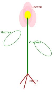 5. Зарисуйте общее строение цветкового растения. Запишите выводы в тетради.