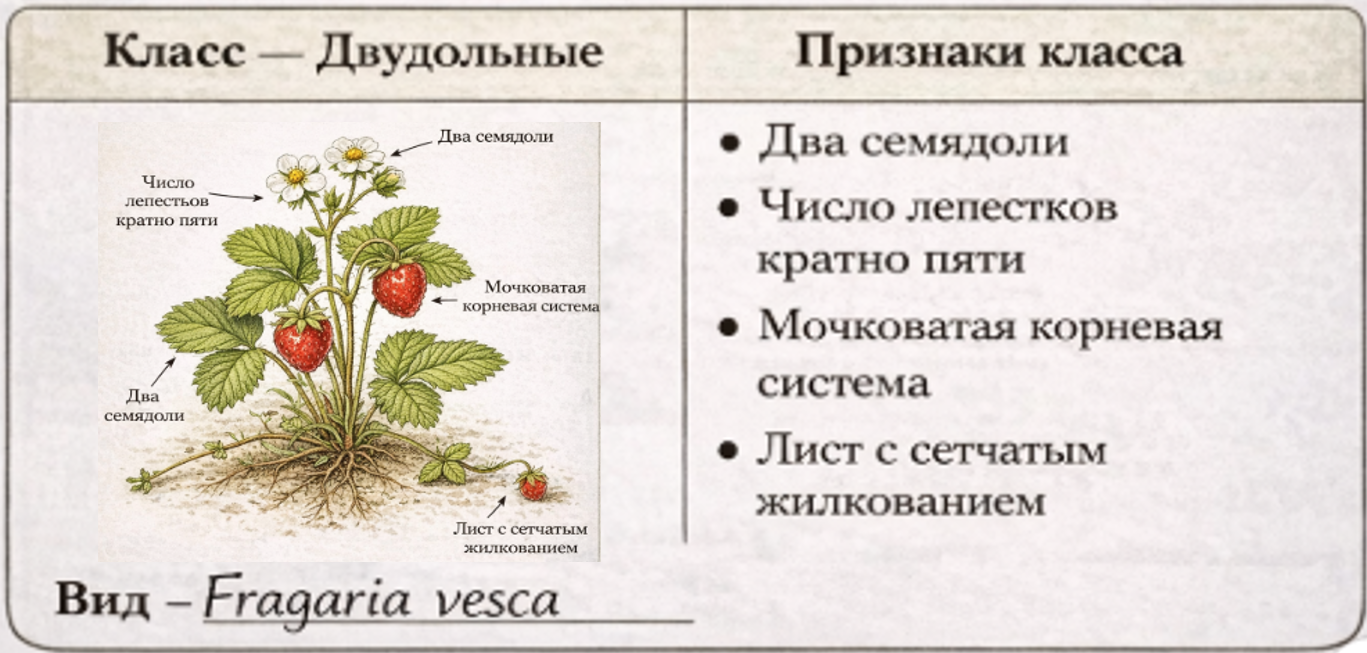 Добавить текст Озвучить Вернуть оригиналЯрким примером служат такие растения, как подорожник и вороний глаз. Подорожник, имея две семядоли в зародыше, относится к классу Двудольные, но обладает признаками однодольных: мочковатой корневой системой и дуговым жилкованием листьев. Напротив, вороний глаз относится к классу Однодольные, но имеет сетчатое жилкование, типичное для двудольных. Таким образом, для правильной классификации биологу необходимо учитывать всю совокупность признаков растения в комплексе.