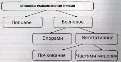 4. Изучив текст параграфа, заполните опорную схему «Способы размножения грибов».