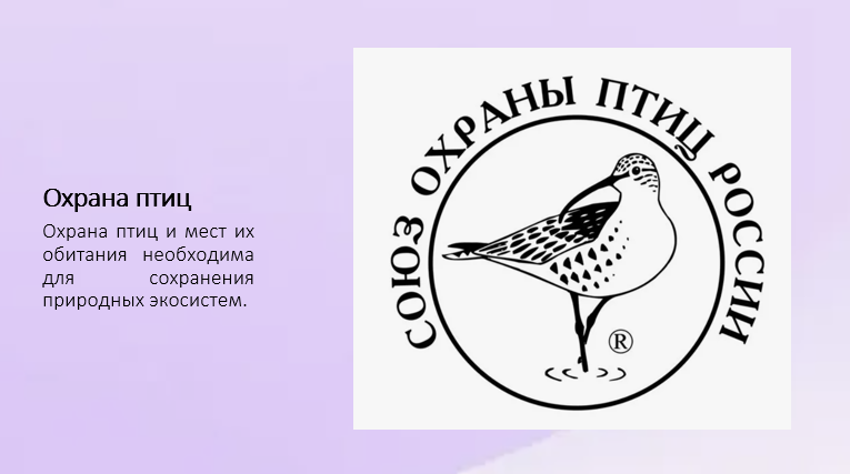 Добавить текст Озвучить Вернуть оригиналСокращение численности птиц негативно отражается на природе и человеке, поэтому охрана птиц и мест их обитания является важной задачей современного общества.