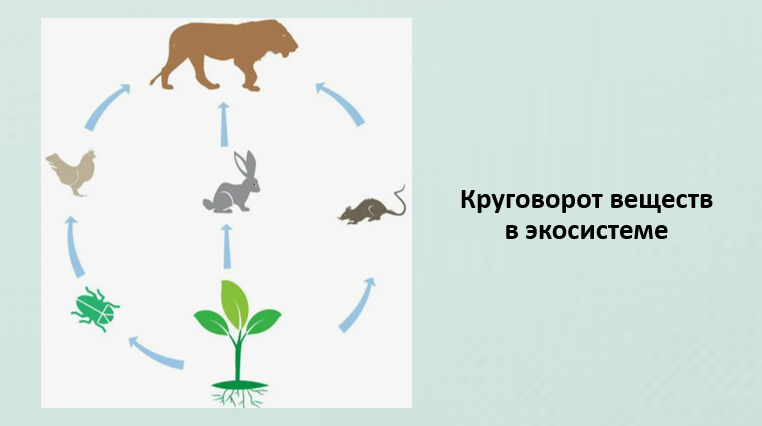 Добавить текст Озвучить Вернуть оригиналКруговорот веществ поддерживает постоянство состава экосистемы. Нарушение этого процесса может привести к истощению почв, снижению численности организмов и разрушению экосистем.