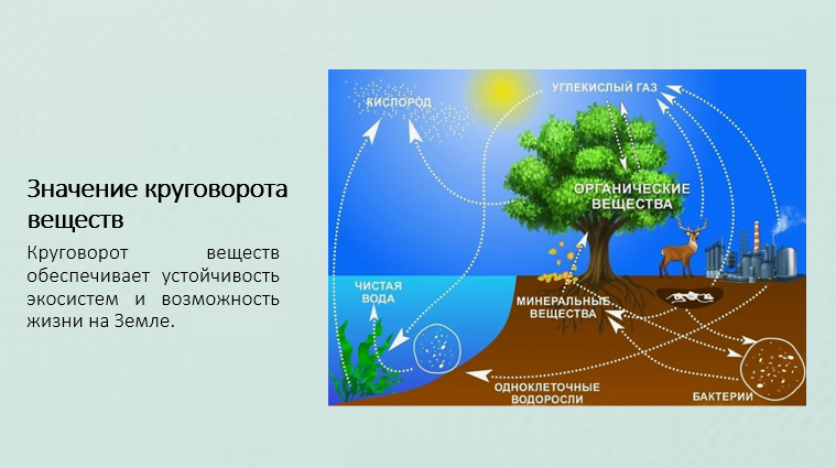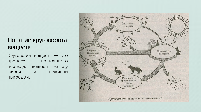 Добавить текст Озвучить Вернуть оригиналКруговорот веществ в экосистеме — это непрерывный процесс перемещения и превращения веществ между живыми организмами и окружающей средой. Он обеспечивает существование жизни на Земле и устойчивость природных экосистем.