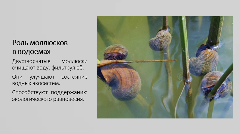 Роль моллюсков в экосистемах водоёмов