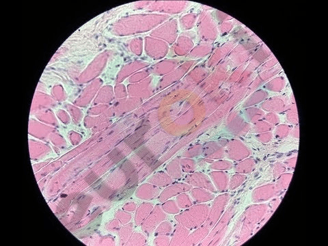 Мышечная ткань — поперечно-полосатая мышечная ткань языка кролика.