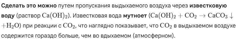Добавить текст Озвучить Вернуть оригиналПростейшее оборудование, с помощью которого можно получить информацию о составе вдыхаемого и выдыхаемого воздуха, — это газоанализаторы или химические реагенты (например, известковая вода).