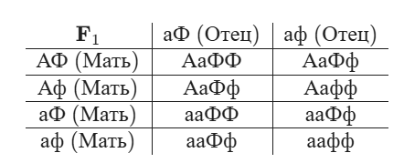 Мать (АаФф): АФ, Аф, аФ, аф.