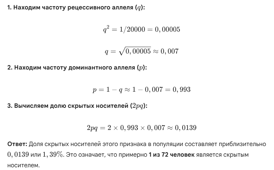 Частота скрытых носителей (Аа) = 2pq.