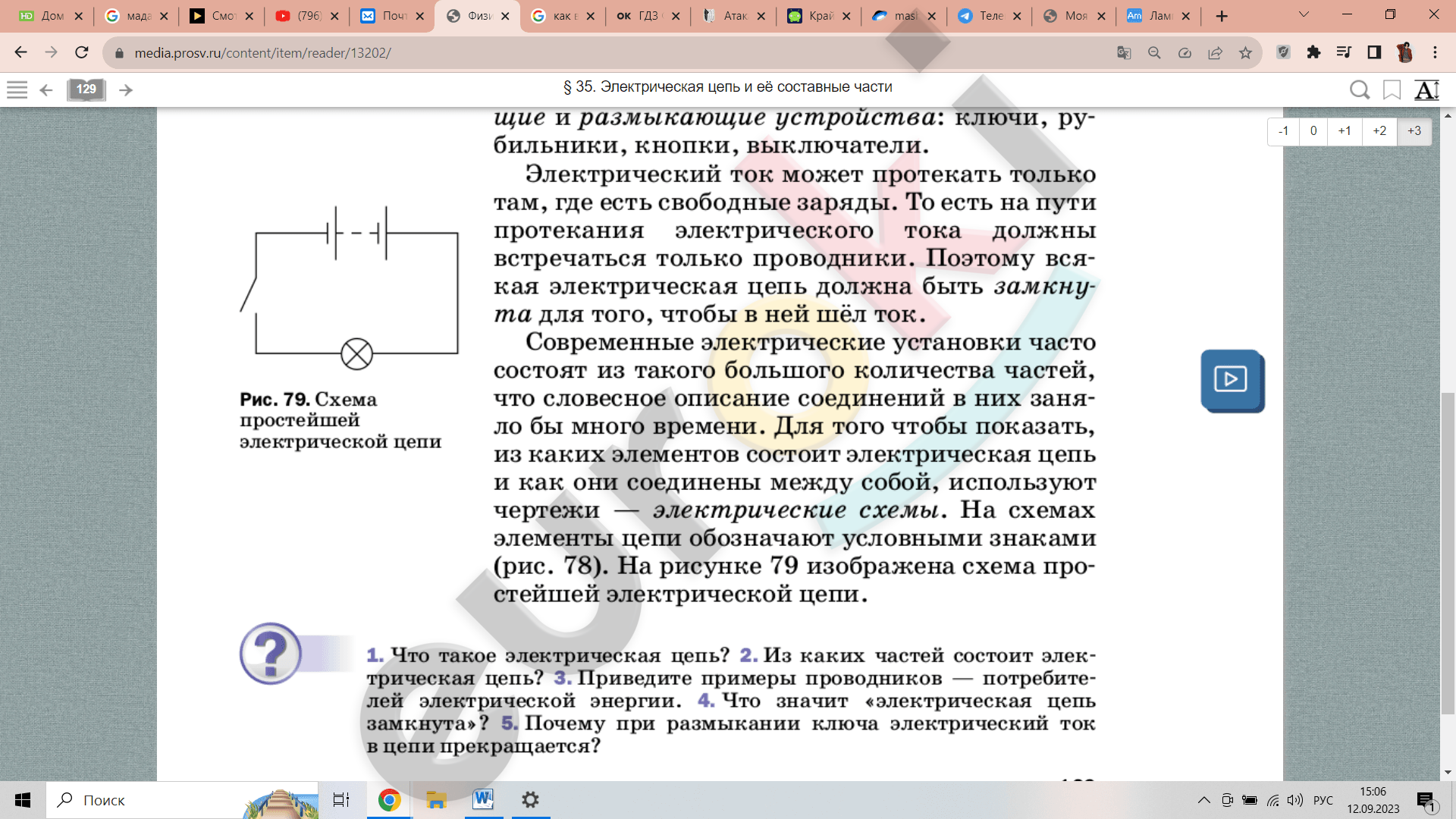 Добавить текст Вернуть оригиналНа пути протекания электрического тока должны встречаться только проводники, поэтому всякая электрическая цепь должна быть замкнута для того, чтобы в ней шел ток.