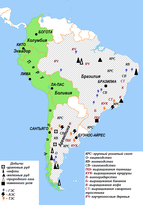 Южная Америка. Политическая карта.