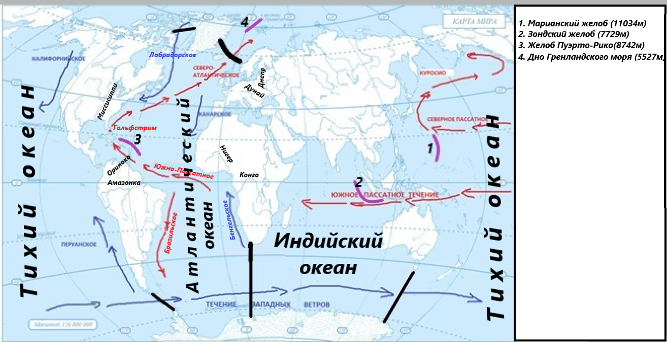 Океанические течения. Реки и озера.