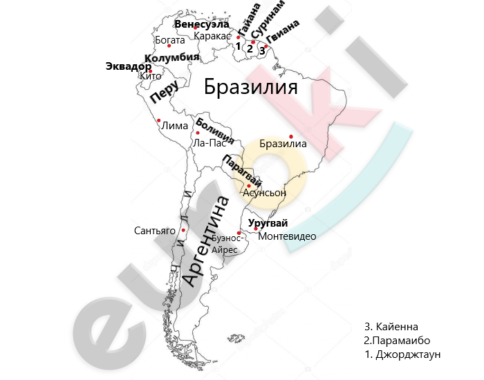 14. Подпишите на контурной карте государства Южной Америки и их столицы.